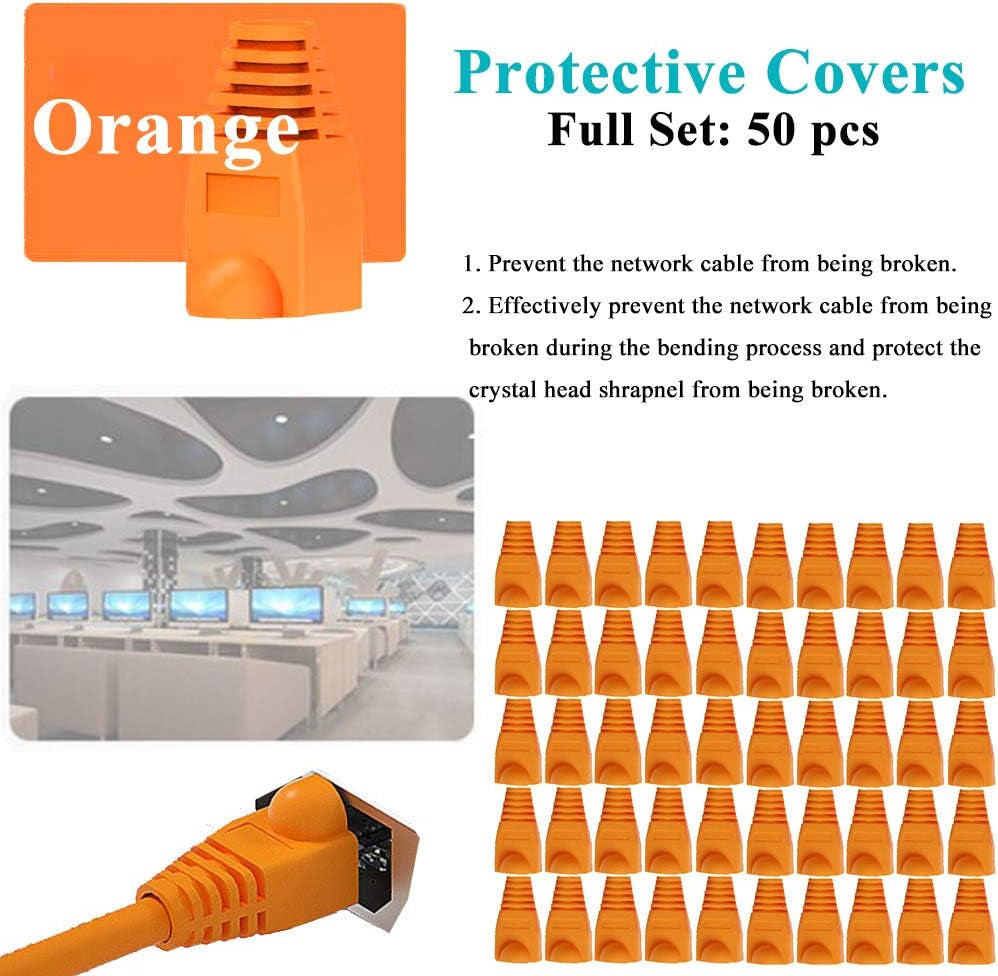 LEATBUY RJ45 Crimper Kit CAT5 CAT6 Crimping Tool Set for Pass through with 50PCS Crimp Connectors, 50PCS Covers Network Wire Stripper Kit Punch down Plier Ethernet Cutter(Dark)